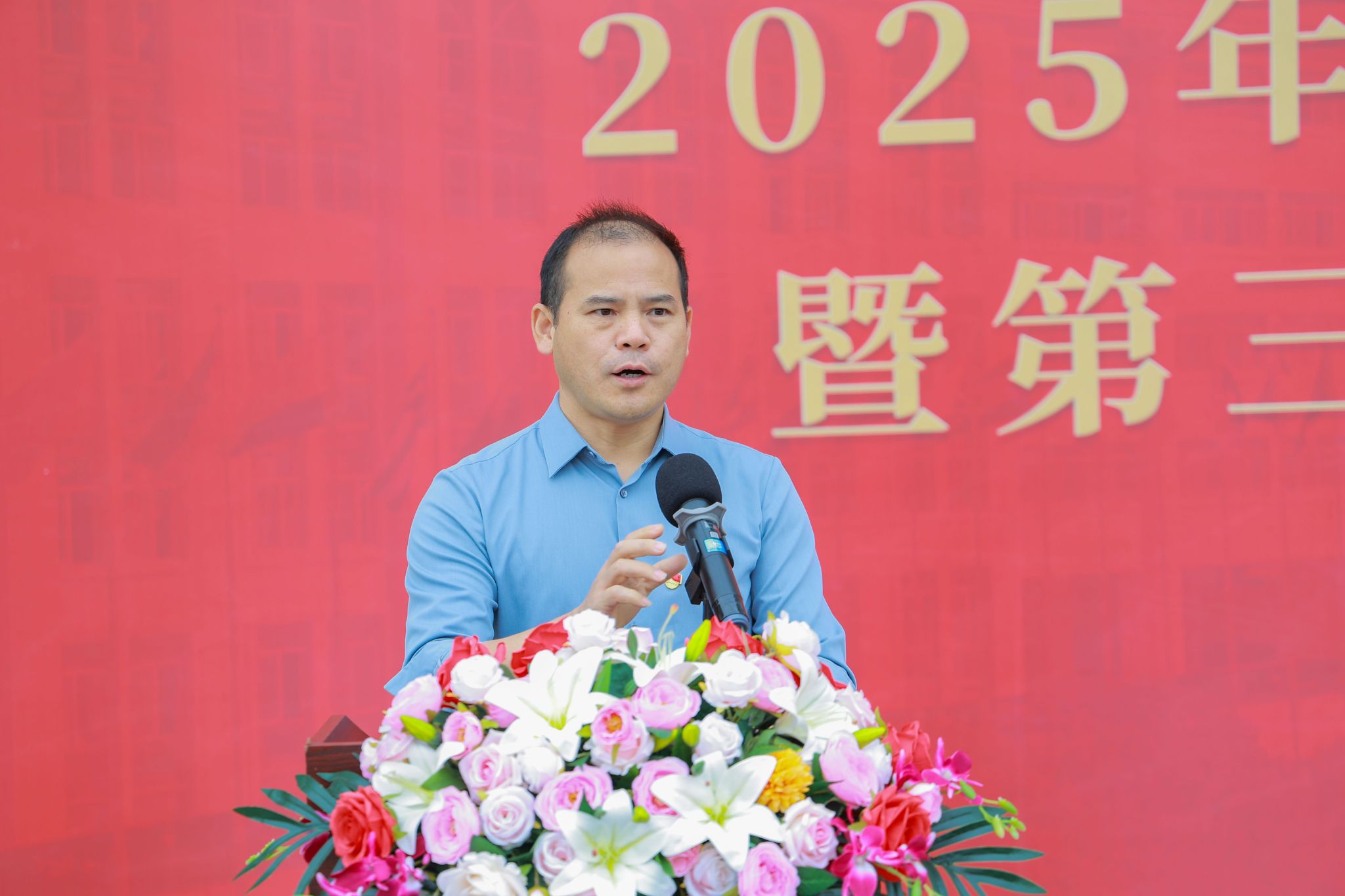 校党委委员、宣传部部长沈新建致辞。他指出,2025年是江西省委教育工委、省教育厅连续第六年开展“红色走读”竞赛活动,学校以活动为契机深化“红色走读+”系列策划,通过“云上游、线上读、线下走”多维模式,组织教师先行、师生同行,近万名学生积极参与其中。学校将“红色走读”与“暑期大思政”“三下乡”“返家乡”等项目深度融合,引导学子立足服装与艺术专业特色,在实践中实现课堂知识与红色教育的有机衔接,引领当代大学生立志做有理想、敢担当、能吃苦、肯奋斗的新时代好青年。