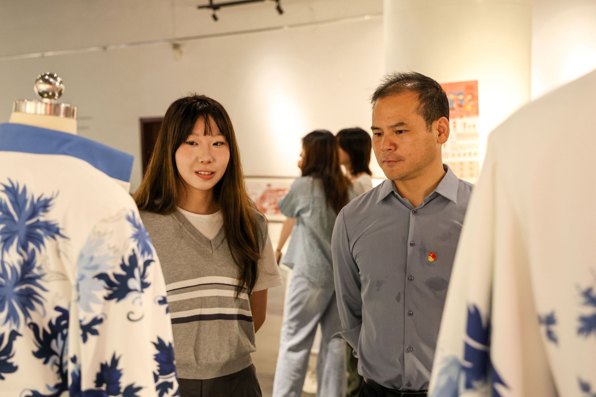 党委副书记唐新强宣布2025年江西服装学院暑期社会实践成果暨第三届“红色走读”作品展开幕。与会嘉宾及师生代表移步展厅参观了展览。