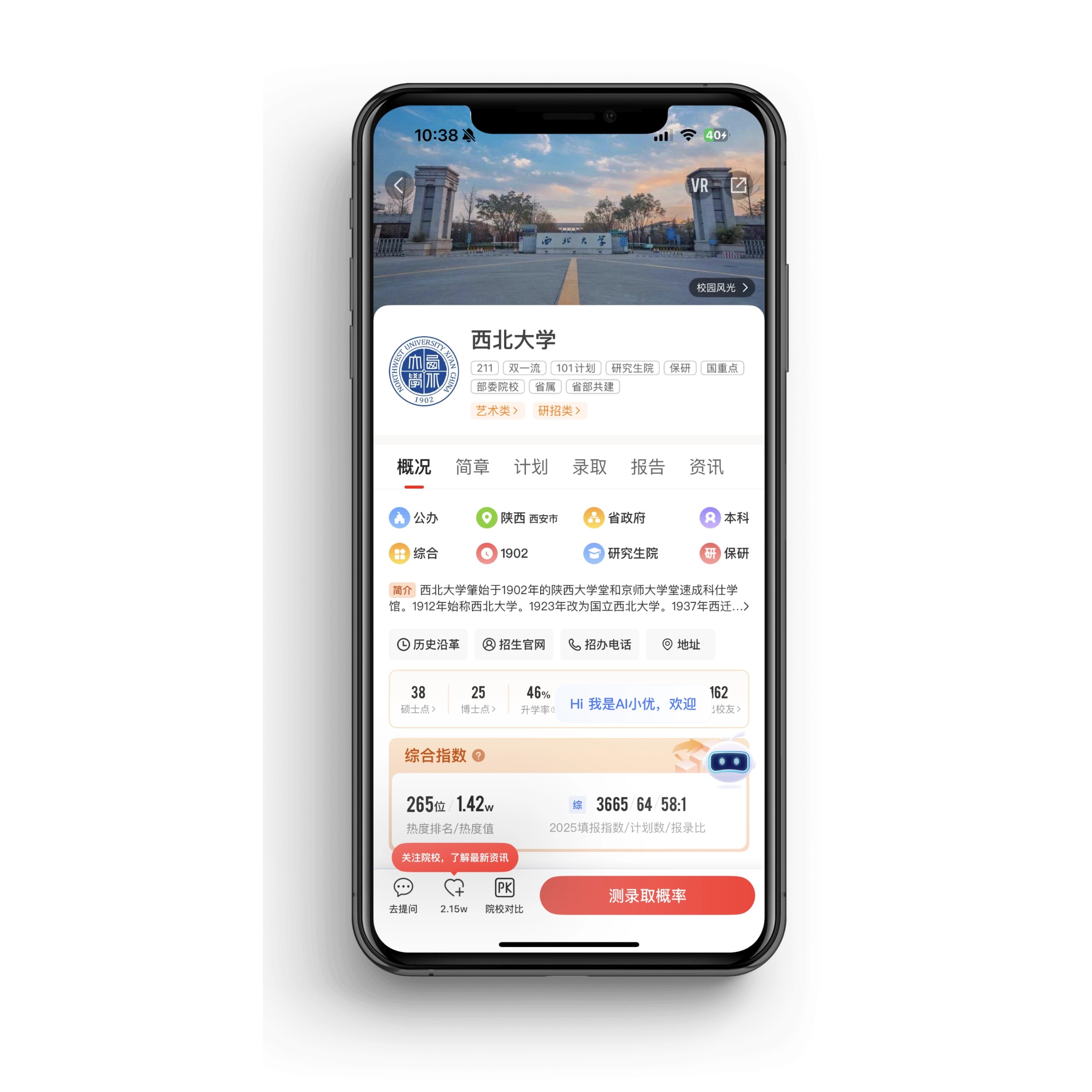 西北大学不仅拥有丰富的专业选择和优质的教育资源,还为学生提供了广阔的实践平台和就业机会。如果你对考古、地质、经济学等专业感兴趣,西北大学绝对是个不错的选择。在选择专业和院校时,优志愿APP可以助你一臂之力。它能带你深入了解西北大学的专业详情、录取数据等信息,让每一份努力都精准对接未来方向。