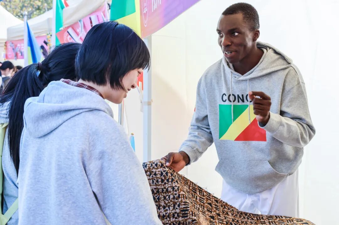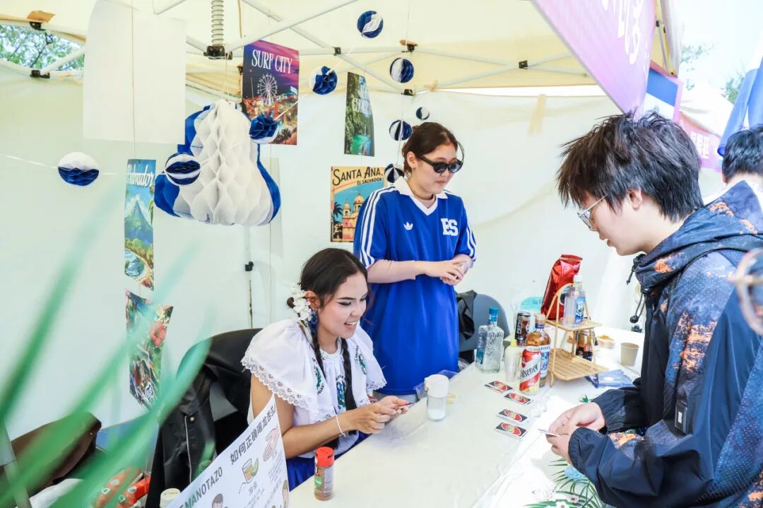 不用跨出国门,在下沉式广场就能“环游世界”!本届文化节搭建了覆盖5大洲、23个留学生来源国的国家展台,每个展台都是一处“迷你文化地标”。