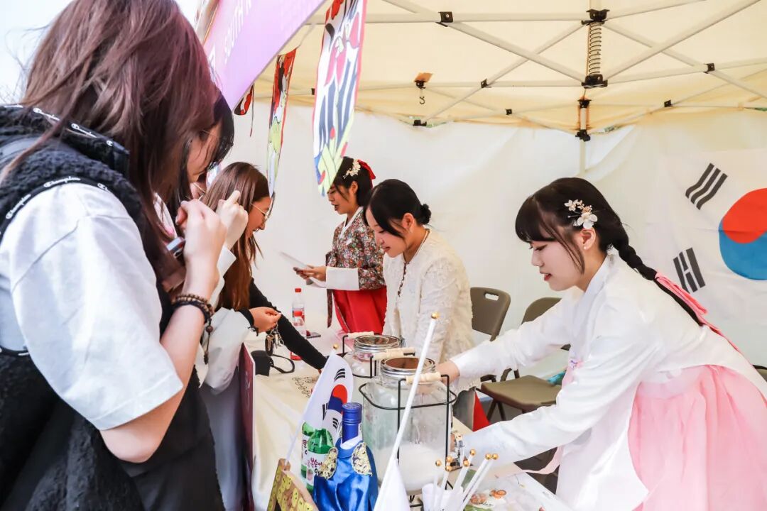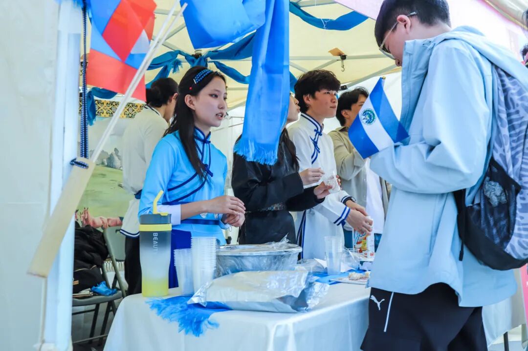 让人挪不开脚步的是沉浸式体验环节:在马来西亚展台,能亲手尝试海娜手绘;在蒙古展台,可亲自体验拉弓射箭;不少留学生还现场“露一手”,制作起本国传统美食——越南春卷、韩国传统饮料、泰国奶茶、乌克兰水饺、马来西亚便当……刚出锅的美食香气飘满广场,师生们排着队品尝,边吃边和留学生唠家常,瞬间拉近了彼此的距离。活动现场还设置了“最受欢迎国家展台”投票,大家拿着选票穿梭在各个展台,为心仪的文化风情打call。