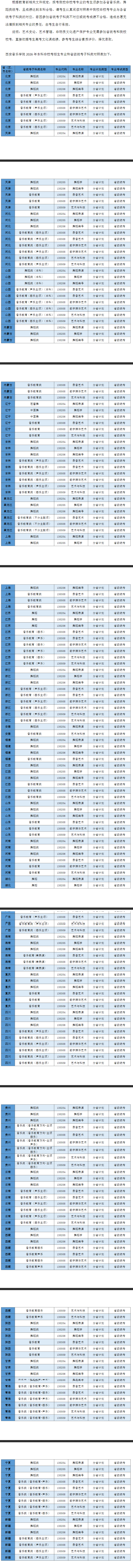 西安音乐学院2026年本科招生非校考专业和各省(区、市)统考子科类对照表