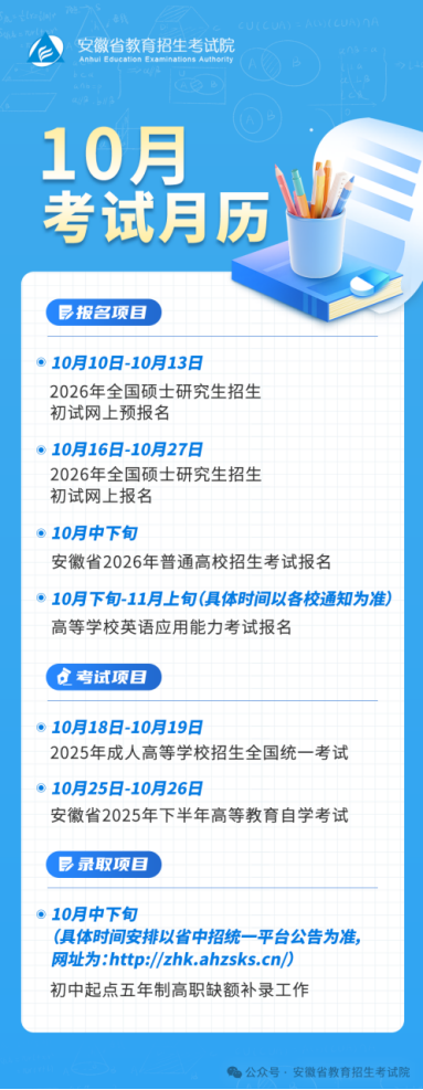 安徽省2025年10月教育招生考试月历