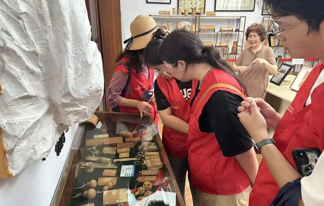 在常州勤业路 17 号的一座古典院落中,白氏三代人用刻刀在青竹上书写的传奇,正静静流淌着时光的韵味。这里是非遗“留青竹刻(平雕)” 的核心基地,并完整保留着传统的雕刻场景:青竹在刻刀下层层剥离,留青之处如墨色氤氲,尽显水墨写意之美;去青之地似瓷胎莹润,透着玉石般的温润质感。一刀一刻间,皆是技艺的传承。实践团队有幸目睹了300多件竹刻珍品,每一件都凝聚着匠人对技艺的极致追求,透过件件珍品,团队成员近距离触摸到了中国人“以竹明志”的人生哲学。