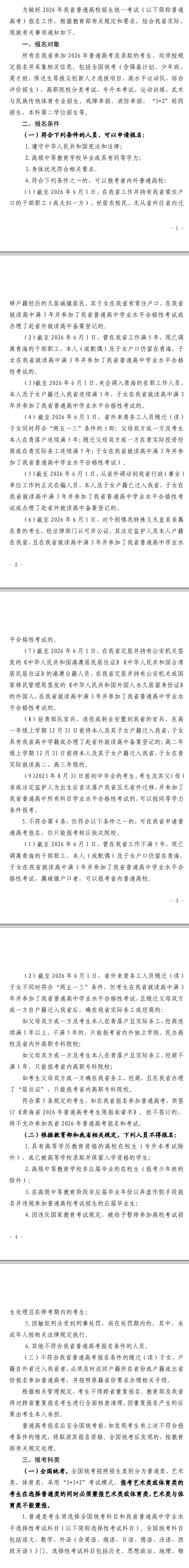 文章来源:青海教育考试网 青海关于做好2026年普通高校招生统一考试报名工作的通知