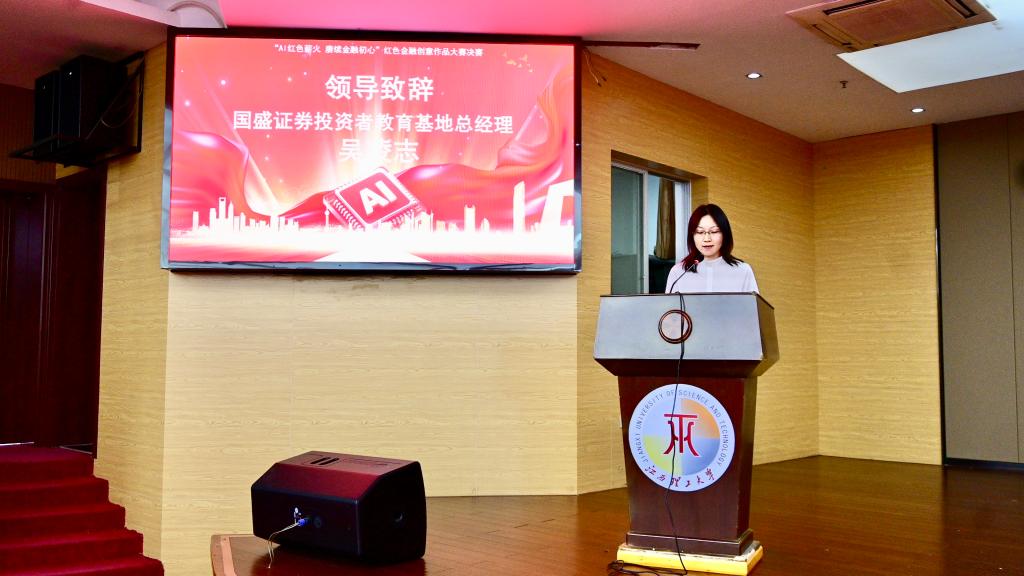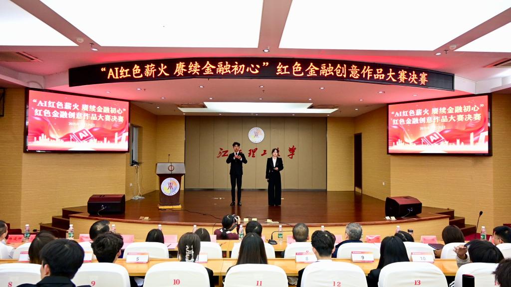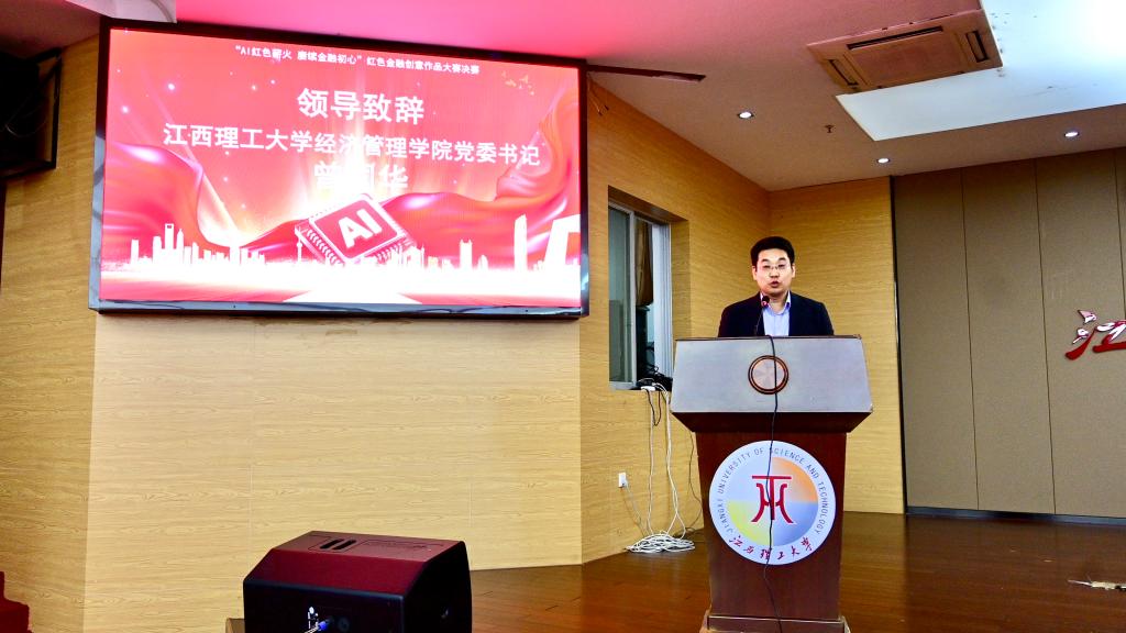 本网讯 10月25日,在中国证券监督管理委员会江西监管局、赣州市人民政府办公室指导下,国盛证券联合江西省证券期货业协会、江西理工大学经济管理学院开展的“AI红色薪火·赓续金融初心”红色金融创意作品大赛决赛于红旗校区图书馆赵氟隆学术报告厅举行。赣州市政府办公室副主任朱雪林,国盛证券赣州分公司负责人卢毓明,国盛证券投资者教育基地总经理吴凌志等嘉宾出席决赛。经济管理学院党委书记曾国华、校学工部副部长孟冲、经济管理学院党委副书记吴媛及赣州市政府办、国盛证券、赣州市金融研究院的相关领导与教师代表共同参与活动。
