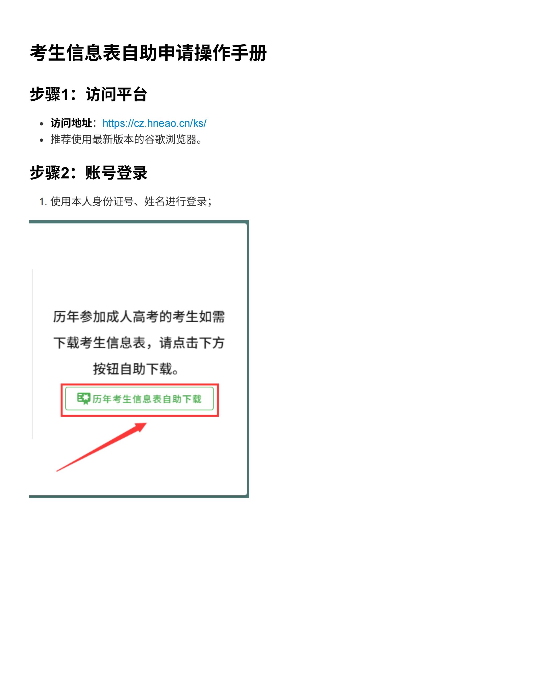 湖南省成人高等学校招生考试考生信息表⾃助申请操作⼿册