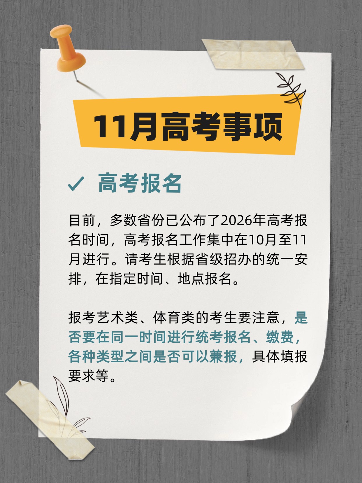 目前高三复习已经迈入夯实基础、突破瓶颈的关键节点。此刻的每一次提笔刷题、每一轮知识点复盘,都在为你心底的梦想悄悄铺就前路。速览11月高考关键事项,帮你精准抓重点、高效破难点,用厚积薄发的力量,稳稳赢下这段冲刺时光!