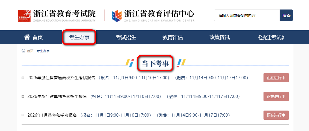 浙江省2026年普通高考、单独考试招生、1月选考学考网上报名正在同步进行中。考生须在规定时间内登录相应报名系统填写报名信息。一起来关注详细操作流程。
