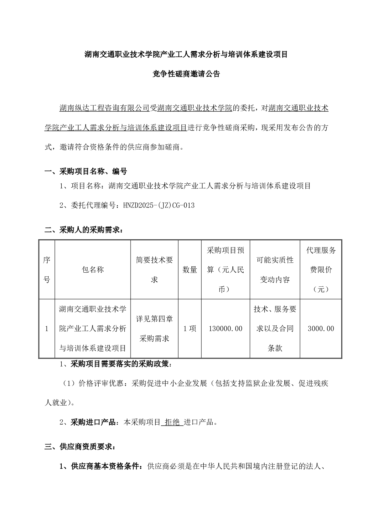 学院产业工人需求分析与培训体系建设项目竞争性磋商邀请公告