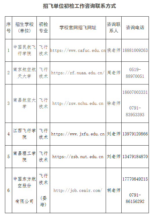 (2)各民航招飞单位将派员在我省4个设区市设点开展初检,对报名考生进行身份信息审核、目测筛选、初步检查、
