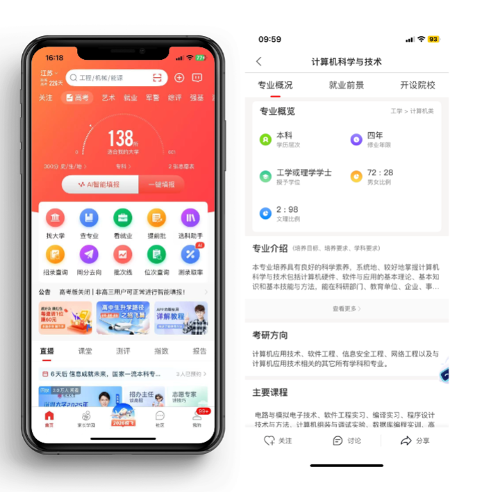 只需下载优志愿 APP,用「找大学」功能就能一键查询各院校相关专业的详情,包括招生分数、课程设置、就业方向等,精准匹配分数对应的院校;还能使用平台的「测评功能」,结合孩子的学科特长、兴趣偏好,生成专属 “学科适配度报告”,帮孩子明确适合的专业方向,避免盲目选校踩坑!