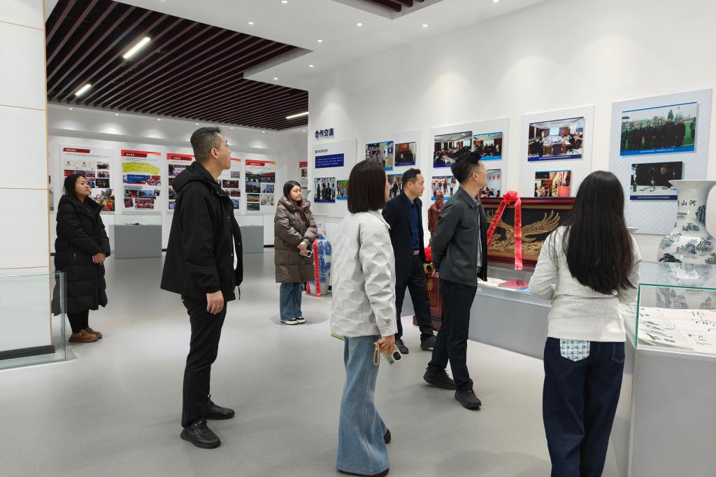 实地参观交流,深化校情认知座谈结束后,我校领导陪同两所中职学校嘉宾参观学校展室群。在讲解员的引导下,依次参观了校史展厅、职业教育发展史展厅及爱国主义教育展厅,全面了解我校的办学历史、办学理念、学科建设成果及职业教育改革实践历程。通过实物陈列、图文展示、多媒体互动等形式,嘉宾们对我校的办学特色、师资力量、产教融合成果有了更直观、深入的认识,为后续合作的进一步推进奠定了坚实基础。