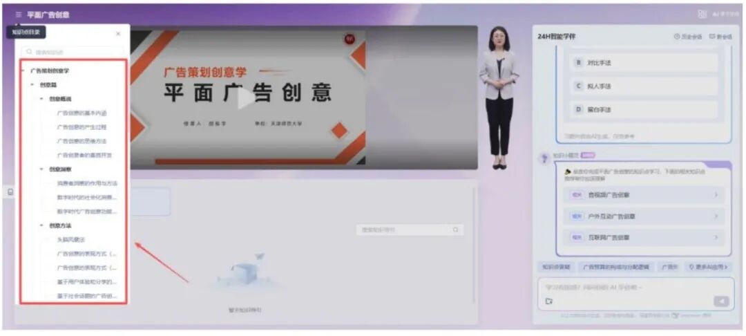 师生体验:教学效率与学习质量双提升学生们对智慧教学给予高度评价。管理学院大数据管理与应用专业史佳佳同学表示:“雨课堂的AI学伴能够及时解决疑问,答案紧扣课程内容、专业靠谱,逻辑清晰且重点加粗,理解起来省时省力。”教师们精心构建的知识图谱助力学生直观把握知识结构,AI陪练功能可以快速检验学习成果,实现精准查漏补缺。教师们同样感受到教学效率的显著提升。心理学部刘芳老师谈到:“以前备一节课都需要好几个小时,现在在智慧教学平台的协助下可以自动生成海量习题和知识图谱,让我有更多的时间和精力放在个性化课程设计上。”AI技术还通过分析课堂录像、作业批改情况等数据,为师生生成“成长画像”,进而精准提供定制化教学内容和教学改进建议。样板示范:打造可复制推广的先进经验学校同步开展“智慧教学重点课程建设计划”,重点支持一批教学基础扎实、改革意愿强烈的优质课程。《广告策划创意学》作为代表性课程,深度融合人工智能技术,构建了包含知识图谱、能力图谱、问题图谱的完整体系。课程负责人胡振宇介绍,该课程依托雨课堂平台实现了全场景AI赋能,包括24小时数字人视频讲解、智能学伴、智能备课等功能,让人工智能与教学全流程深度融合。课程还特别注重价值引导,通过AI技术精准捕捉“创意是否过度娱乐化”等核心议题,启发学生在思辨中强化行业责任感与社会使命感。