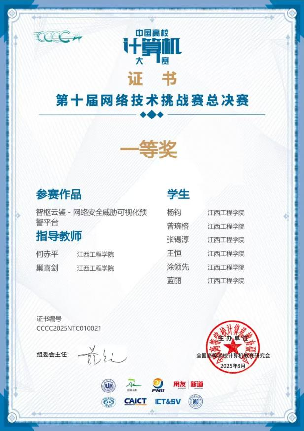 接下来,学院将继续加强计算机和网络技术领域的教学实力与创新能力,鼓励更多学子积极参与各类高水平赛事,不断提升专业素养和实战能力,为“网络强国”建设培养更多的网络创新人才!