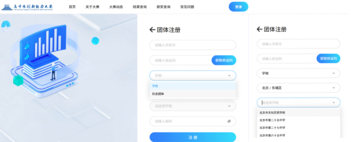 本届大赛采用团体报名的方式,各单位大赛负责人访问大赛官网,注册团体参赛账号,注册成功后点击登录,按要求进行报名。具体操作流程如下: