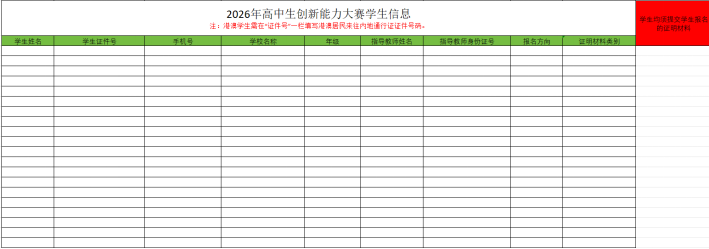 5.进入下一步后,点击“下载表格模板”,在下载的表格文件中按要求填写报名学生信息。填写完成后,点击“导入Excel文件”将填写完成的学生信息导入系统。