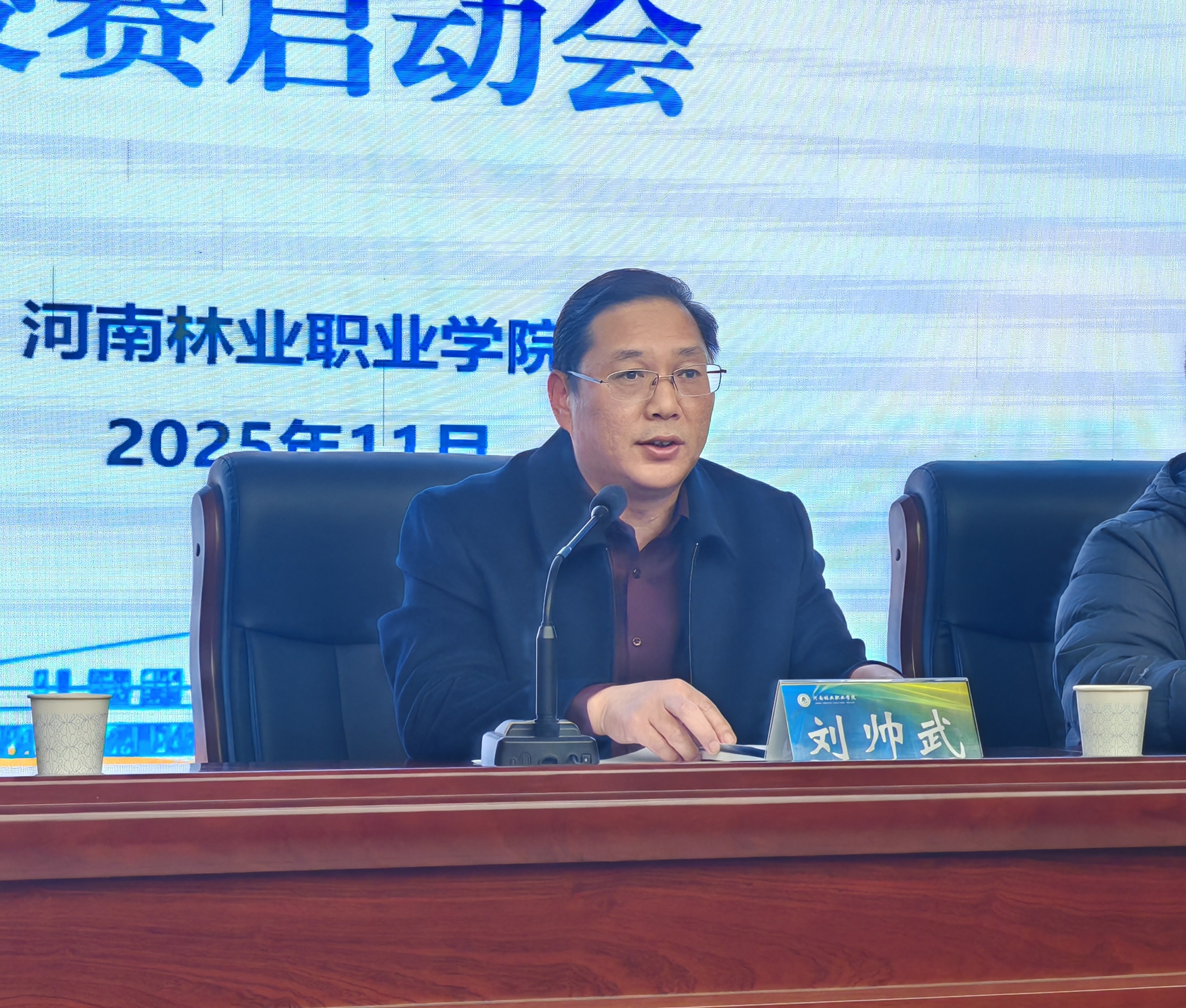 副校长刘帅武在会上作动员讲话。他回顾了我校在上一届省赛中取得的优异成绩,强调本次大赛是落实“以赛促学、以赛促教、以赛促就”理念的重要平台,是推动学校就业指导与人才培养深度融合的契机。刘校长从“回顾成绩、提高站位、精心组织、强化保障”四个方面,对本次校赛的组织工作提出明确要求,希望各学院高度重视、广泛动员、精心指导,确保赛事有序推进、取得实效。