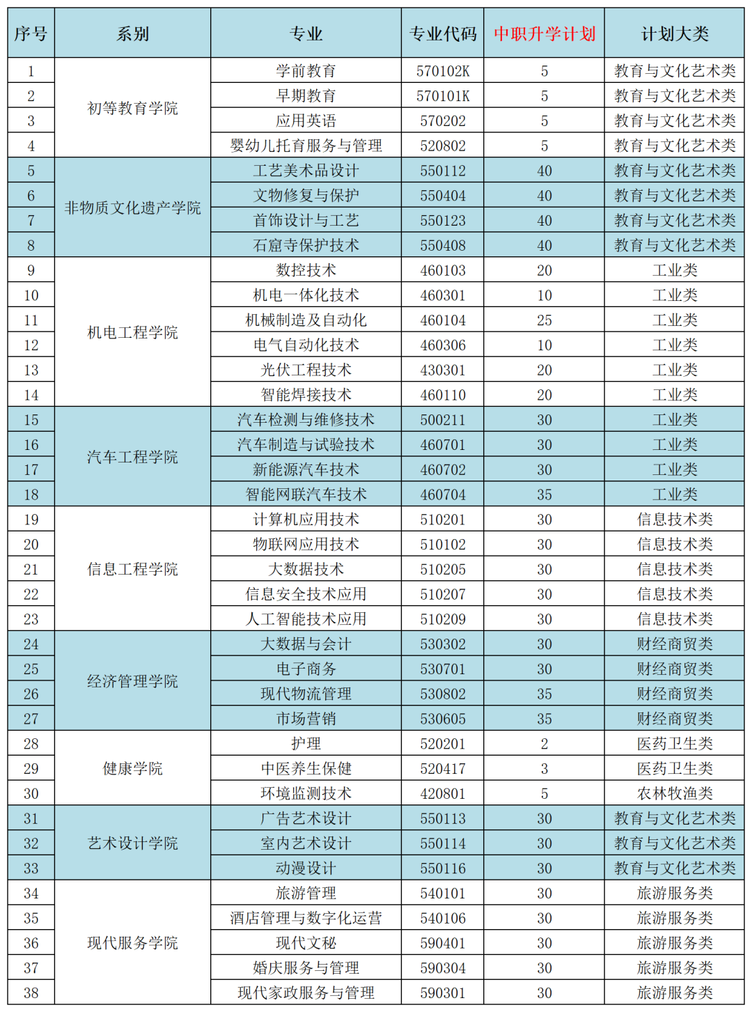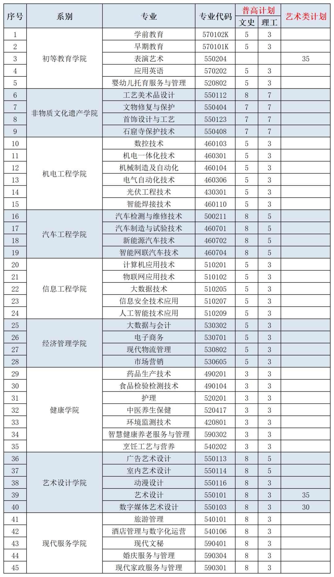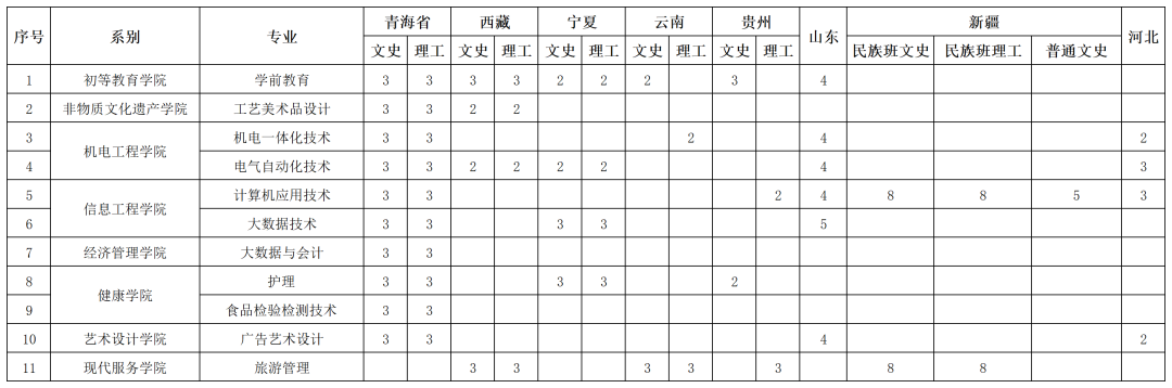 注:此表仅供参考,具体招生专业及计划以教育厅下达为准。