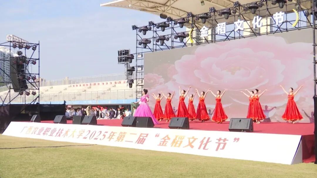 10月28日,2025年广西庆祝中国农民丰收节系列活动之第二届“金稻文化节”系列文化活动在广西农业职业技术大学西校区田径场开幕。活动以“春华秋实,稻玉同辉”为主题,开展万人玉米宴、农仔丰收集市、“产教对话”文化交流、星光颁奖礼暨迎新晚会等项目内容。