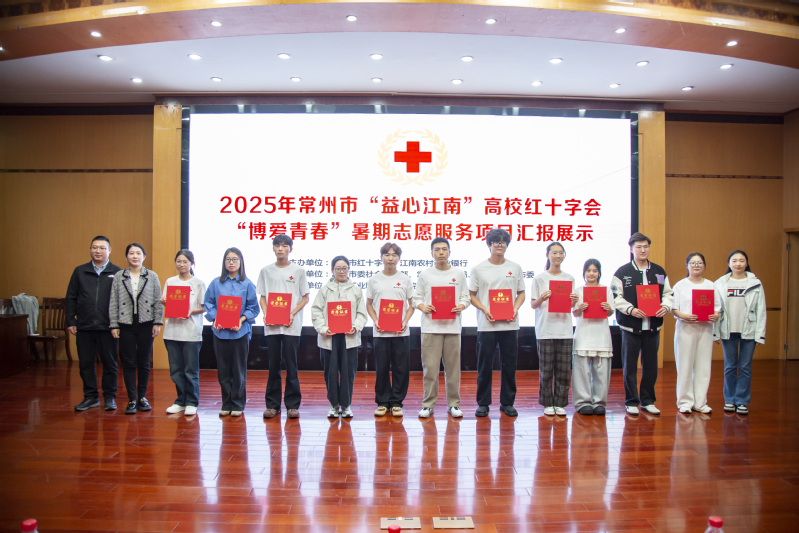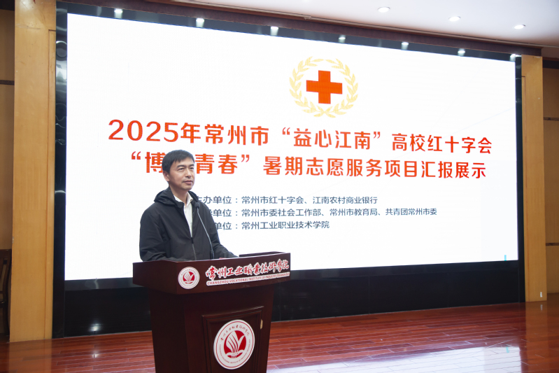 11月6日,2025年常州市“益心江南”高校红十字会“博爱青春”暑期志愿服务项目总结展示活动在我校举行。常州市红十字会党组书记、常务副会长戴亚东,我校党委副书记吴丽云,江南农村商业银行工会副主席殷锡峰,常州市红十字会党组成员、副会长郑跃进,市委社工部、市教育局、团市委、市红会等相关处室负责人,以及各高校红十字会项目负责老师、大学生志愿者、学生代表共200余人参加活动。
