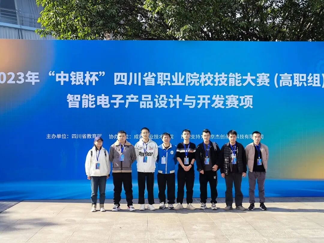 我校信息与智能制造学院学生吴太军、白菲杨、王耀辉与刘真彬老师组成的师生队伍,在2023年“中银杯”四川省职业院校技能大赛智能电子产品设计与开发(师生同赛)赛项中,荣获四川省三等奖。