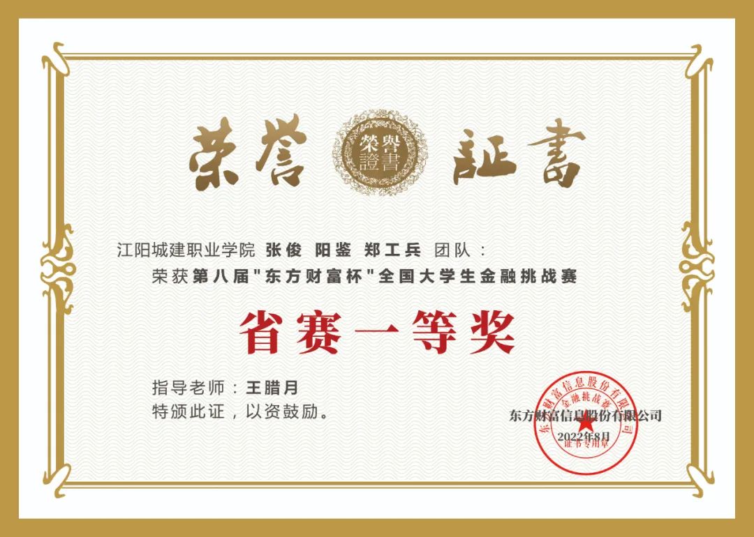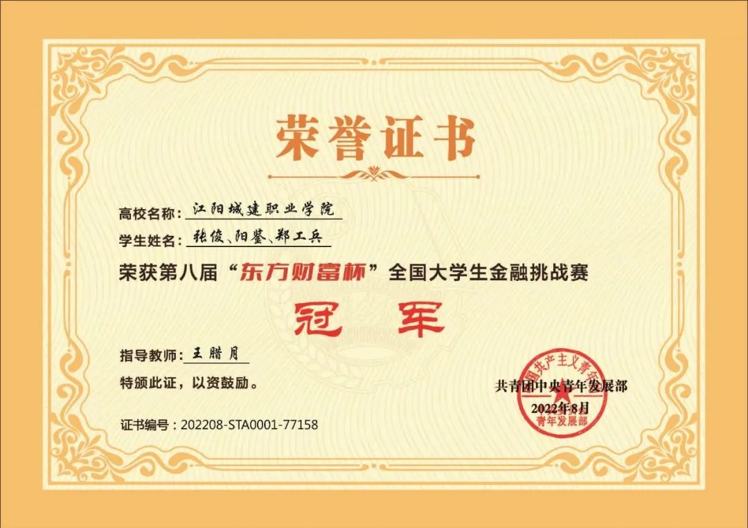 我校信息与智能制造学院学生在“东方财富杯”全国大学生金融精英挑战赛中获得省赛一等奖后,勇夺全国冠军。