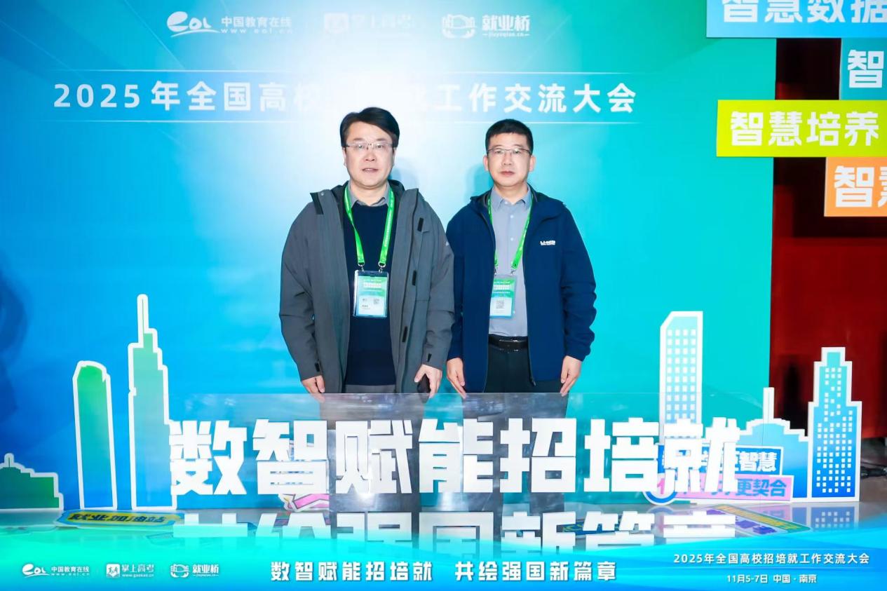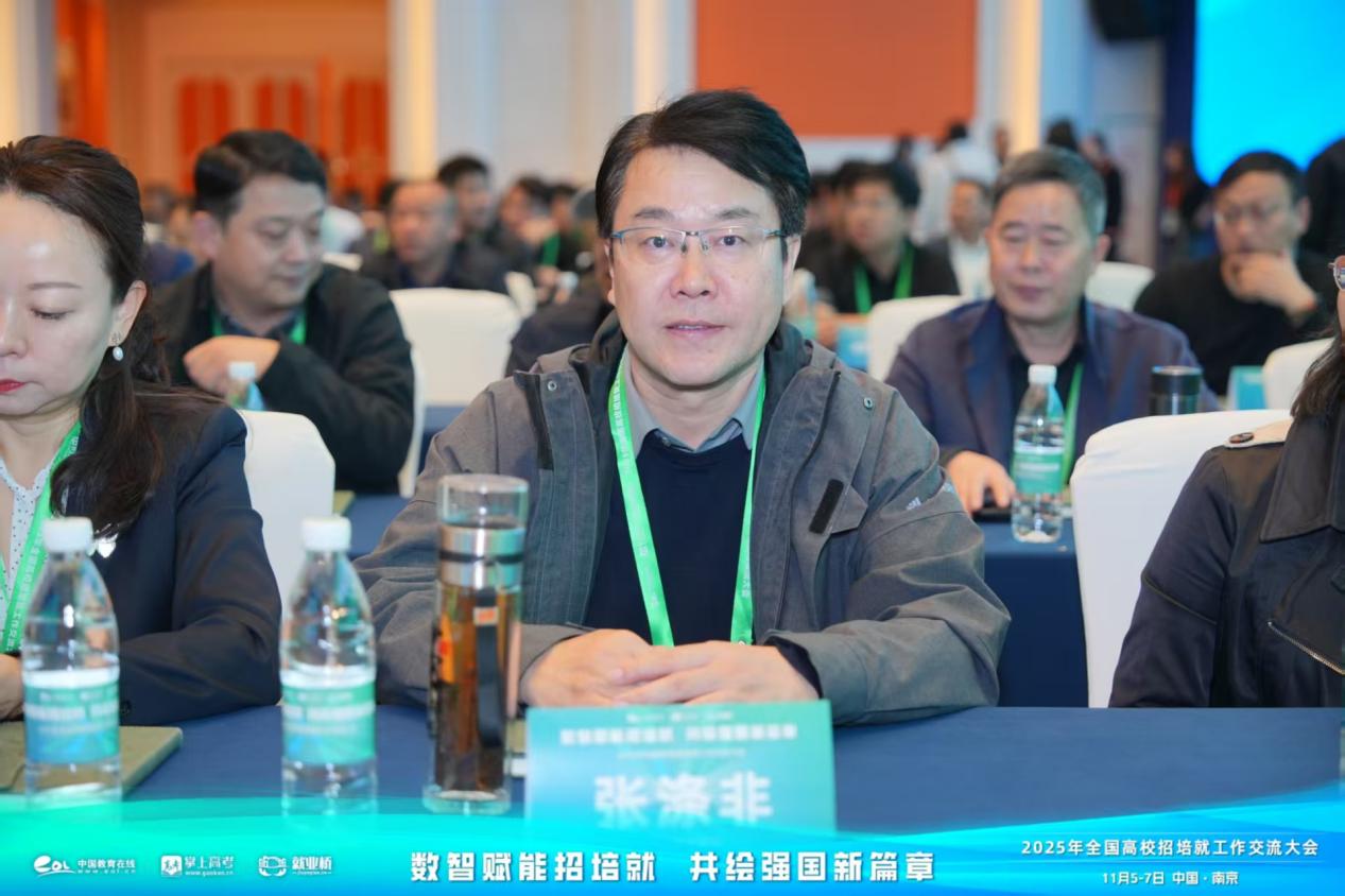 2025年11月5日至7日,由中国教育在线主办的2025年全国高校招培就工作交流大会在南京隆重举行。本次大会以“数智赋能招培就·共绘强国新篇章”为主题,汇聚全国各省市教育主管部门相关负责人、800余所高校的招生、就业、教务工作负责人及教育界专家学者共1500余人,共商数智化助力高校人才建设与高质量发展实践探索。我校副校长张涤非、招生办公室主任李保华代表学校参会。