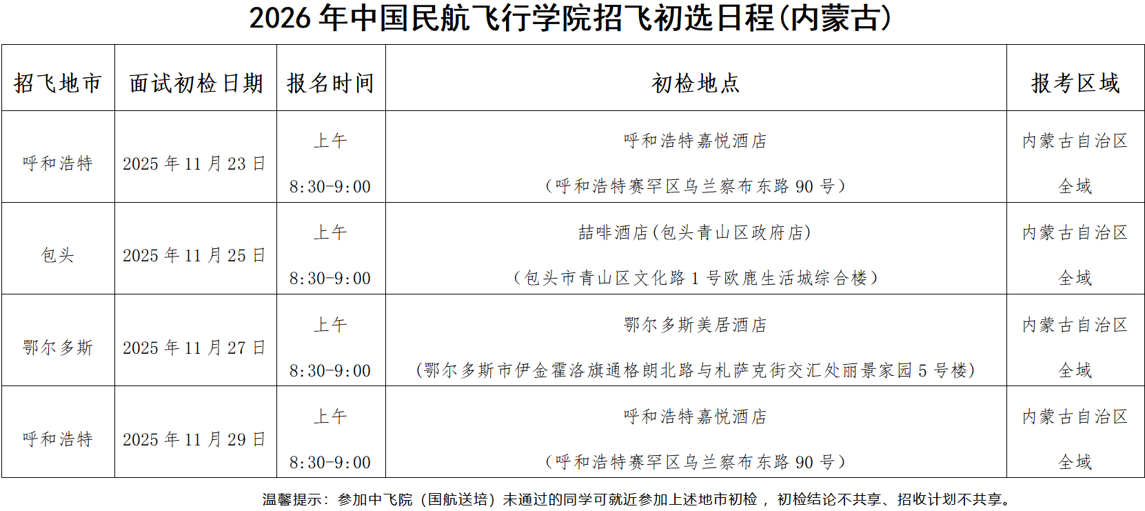招飞初选安排