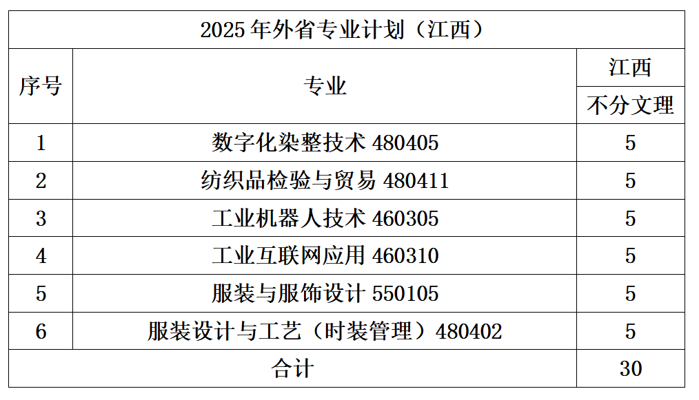 2025年外省专业计划(江西)