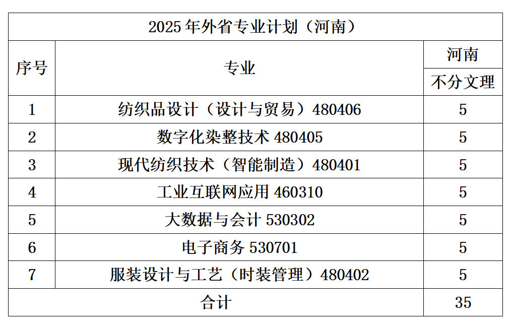 2025年外省专业计划(河南)