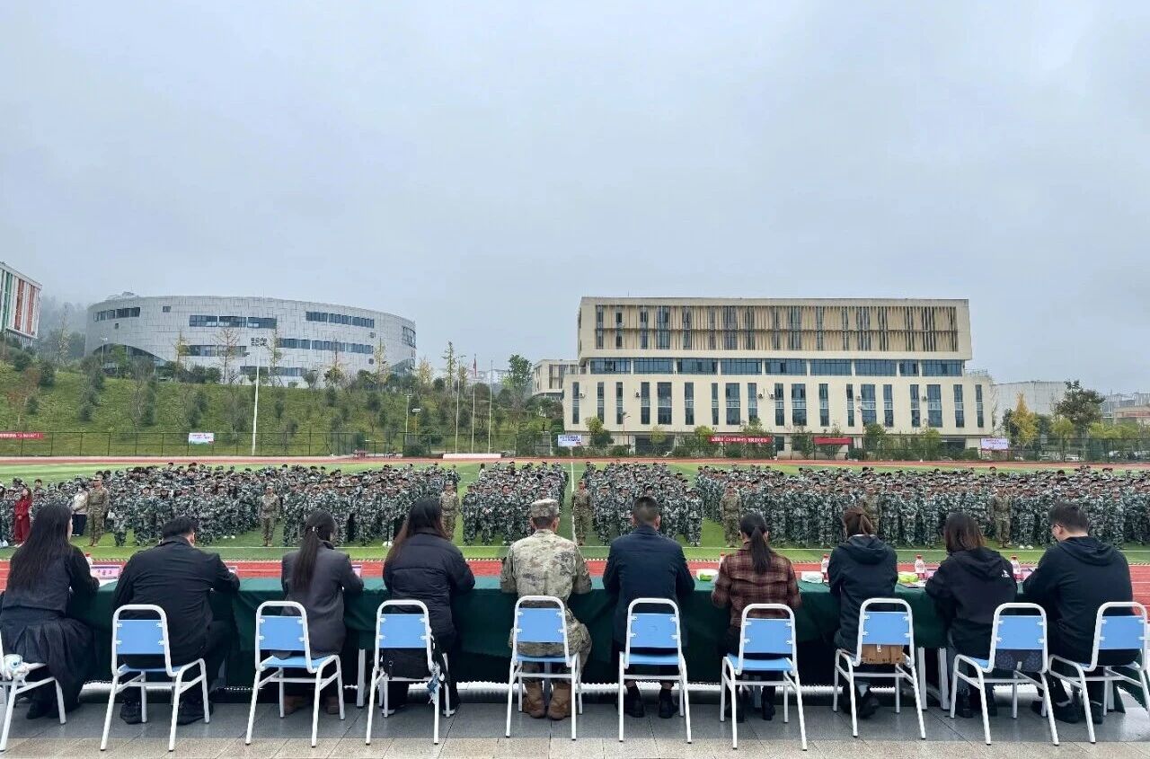 戎装启新程,淬炼正当时。11月8日,重庆数字产业职业技术学院在运动场隆重举行2025级学生军训动员大会。中国人民解放军重庆市忠县人民武装部军事科参谋陈铁军、学生处处长陈勇、全体辅导员、承训部队教官及全体2025级新生参加,以昂扬向上的精神面貌,正式拉开为期两周的军事训练序幕。