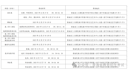 十五、问:2026年青海省艺术类专业省级统考考试时间及地点如何安排?