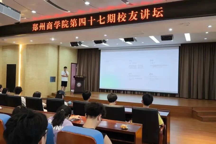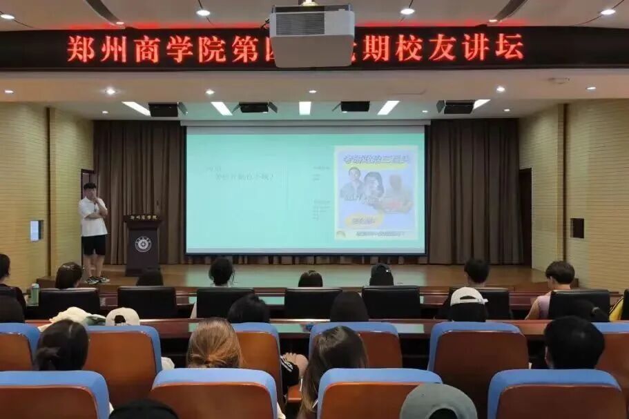 2025年6月11日,郑州商学院自力楼报告厅成功举办第四十七期校友讲坛。本次活动由招生就业处主办、艺术学院承办,特邀2019届优秀毕业生郭昊返校担任主讲嘉宾,同时还邀请了他的同学们:王一喆(考研成绩初试第一)、海金添(考研成绩复试第一)为在校学子分享考研备考策略与职业规划经验。