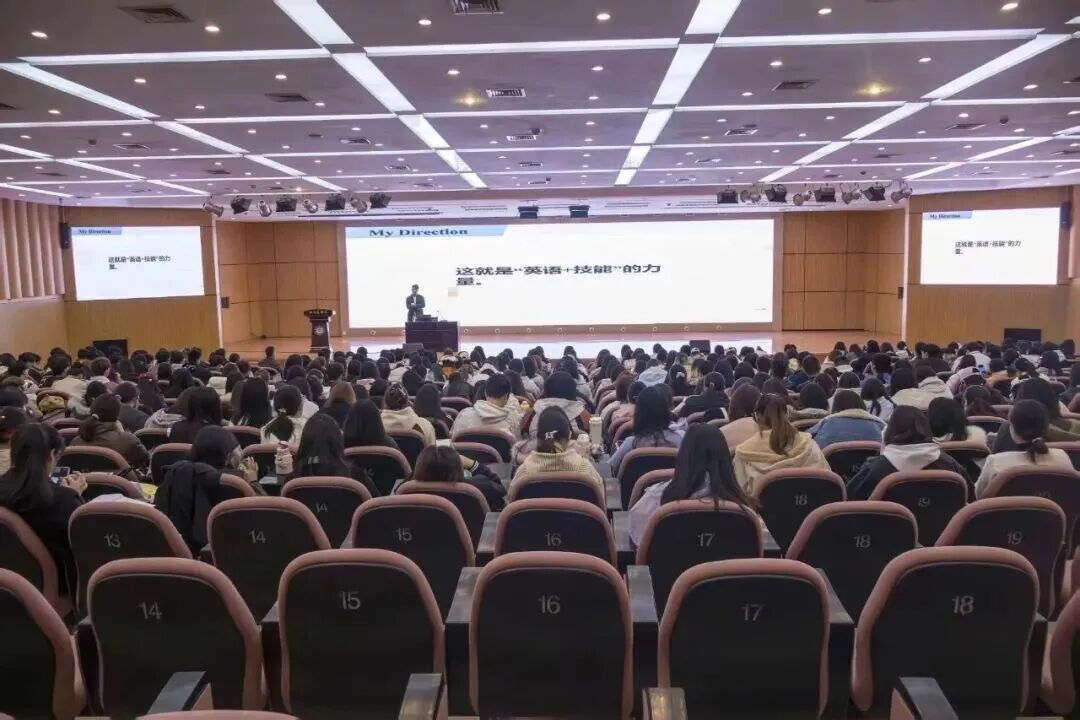 分享环节,童仁虎以自身工作经历为主线,从学生就业的“常见误区”切入,直言不少英语专业学生择业时易陷入“只做翻译、校对”等对口工作的常见误区,着重强调别让英语只剩“英语”,鼓励学子探索“英语+”多元就业路径,如英语加商务、媒体、技术、管理等,将语言能力与爱好、技能结合。他结合自身经历提到,从用英语撰写海外产品推文,到跨文化沟通解决客户疑问、跟着技术团队学习设备术语,这些实践均打破了“英语专业只能做语言相关工作”的刻板印象;同时他建议学弟学妹们要把握好就业机会,无需畏惧专业外内容;提前梳理岗位需求、带着方向就业,让英语成为“加分项”。