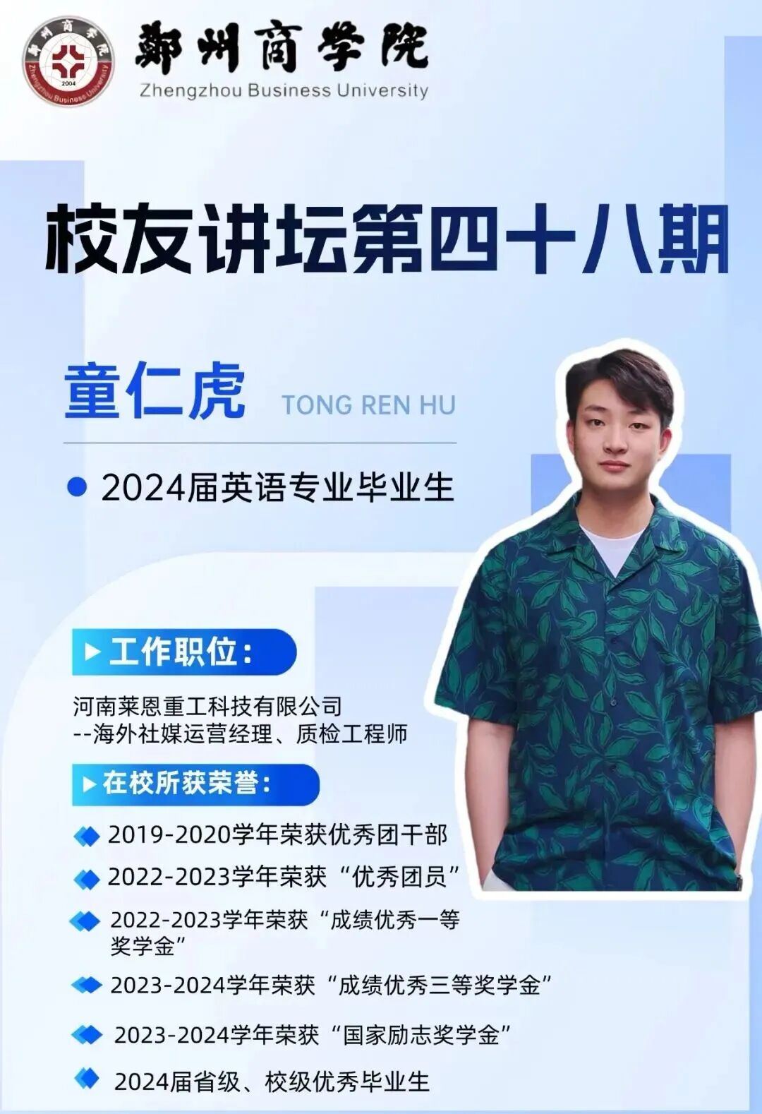 为帮助学生明确职业方向,为未来的就业之路奠定坚实基础,10月21日上午8:30,由招生就业处主办、外语学院承办的郑州商学院校友讲坛第四十八期在图书馆一楼报告厅顺利开讲。本次讲坛特邀外语学院2024届英语专业优秀毕业生童仁虎担任主讲,以“英语+技能”为主题展开,外语学院党委书记王克志、就业专员刘宁老师、辅导员代表、教师代表以及2024级全体学生参加了此次讲坛。