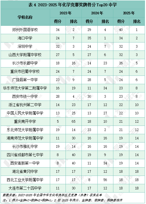 2025年化学竞赛中郑州外国语学校共获得6枚金牌、10枚银牌、2枚铜牌,得分最高,深圳中学获得10枚金牌,为获金牌最多的学校。
