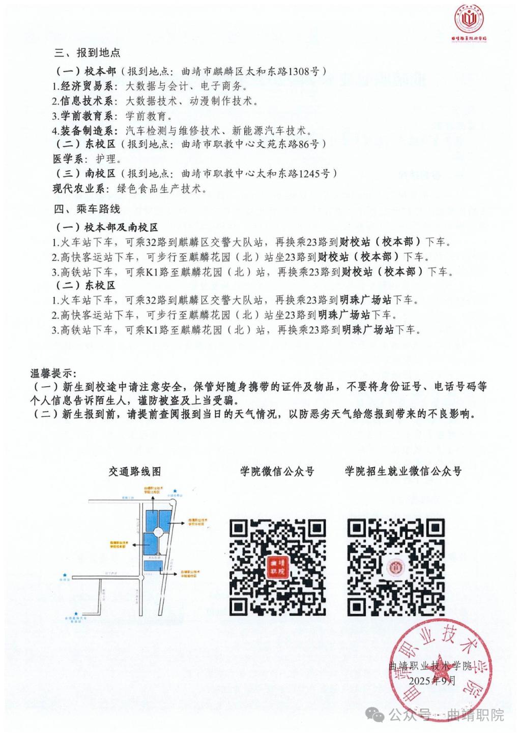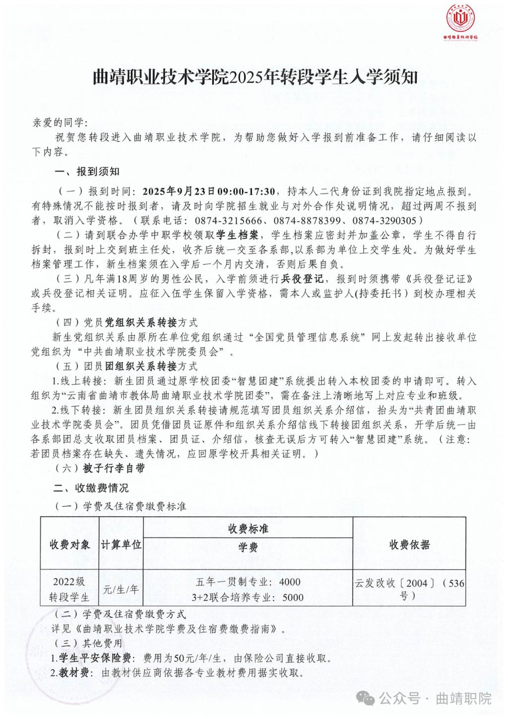 入学须知 || @曲靖职业技术学院2025年转段学生