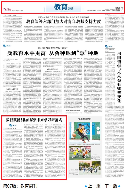 2025年11月10日,《中国青年报》07版刊发文章《数智赋能!北邮探索未来学习新范式》。