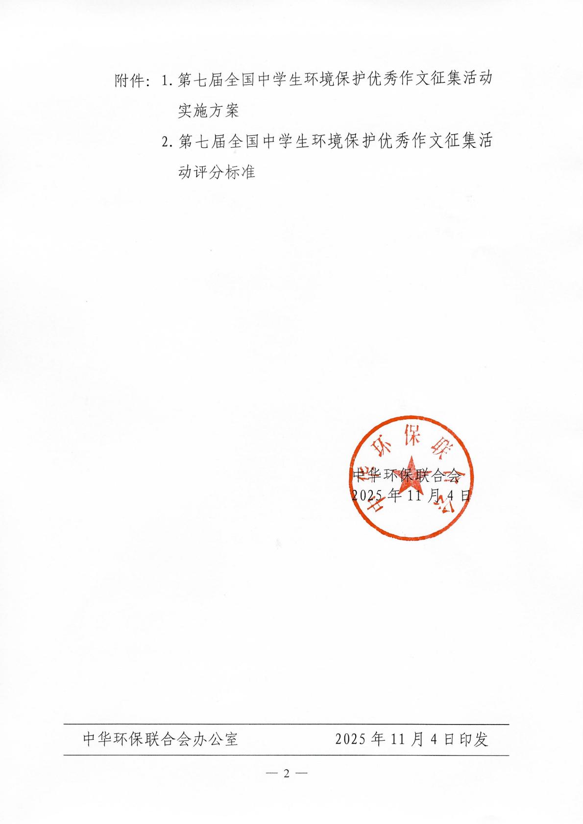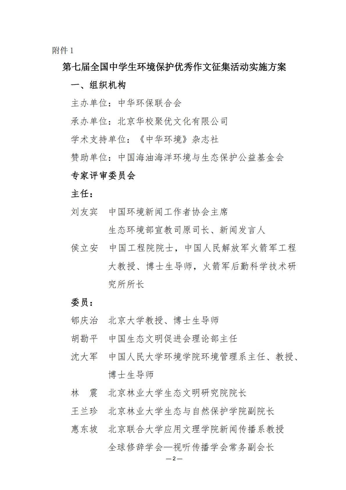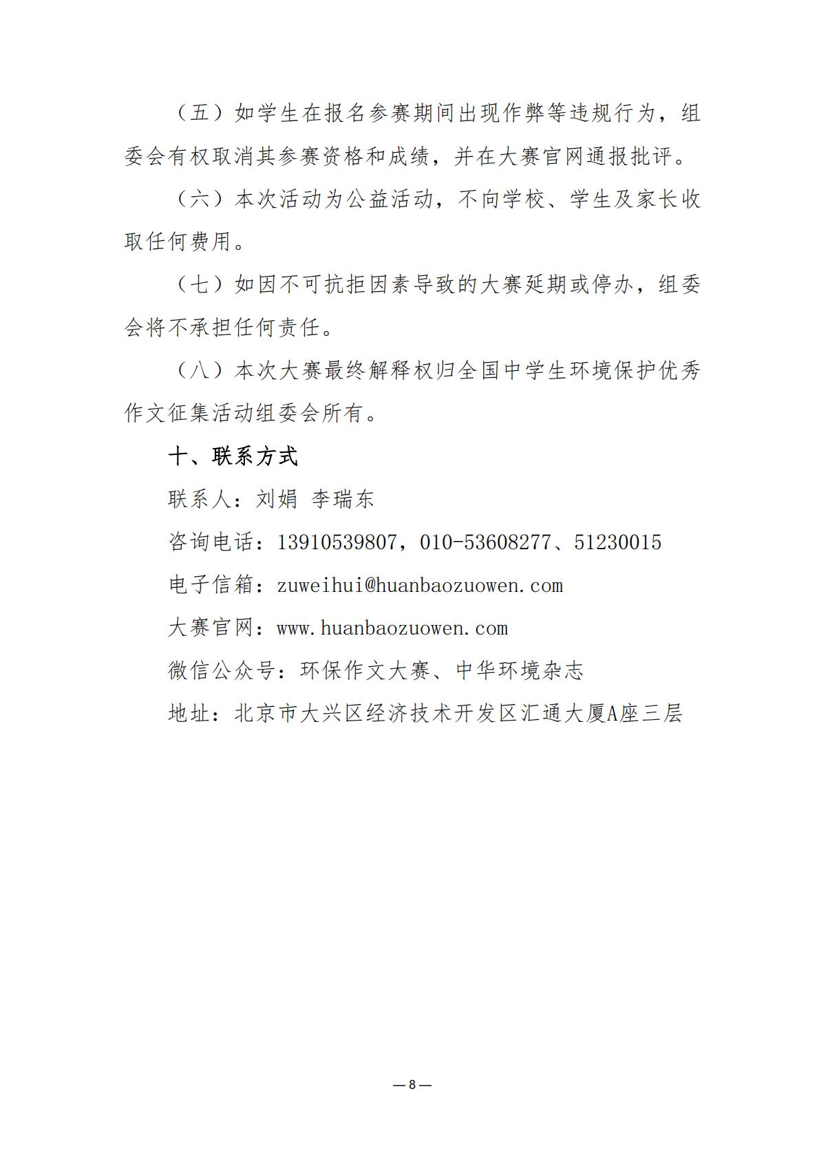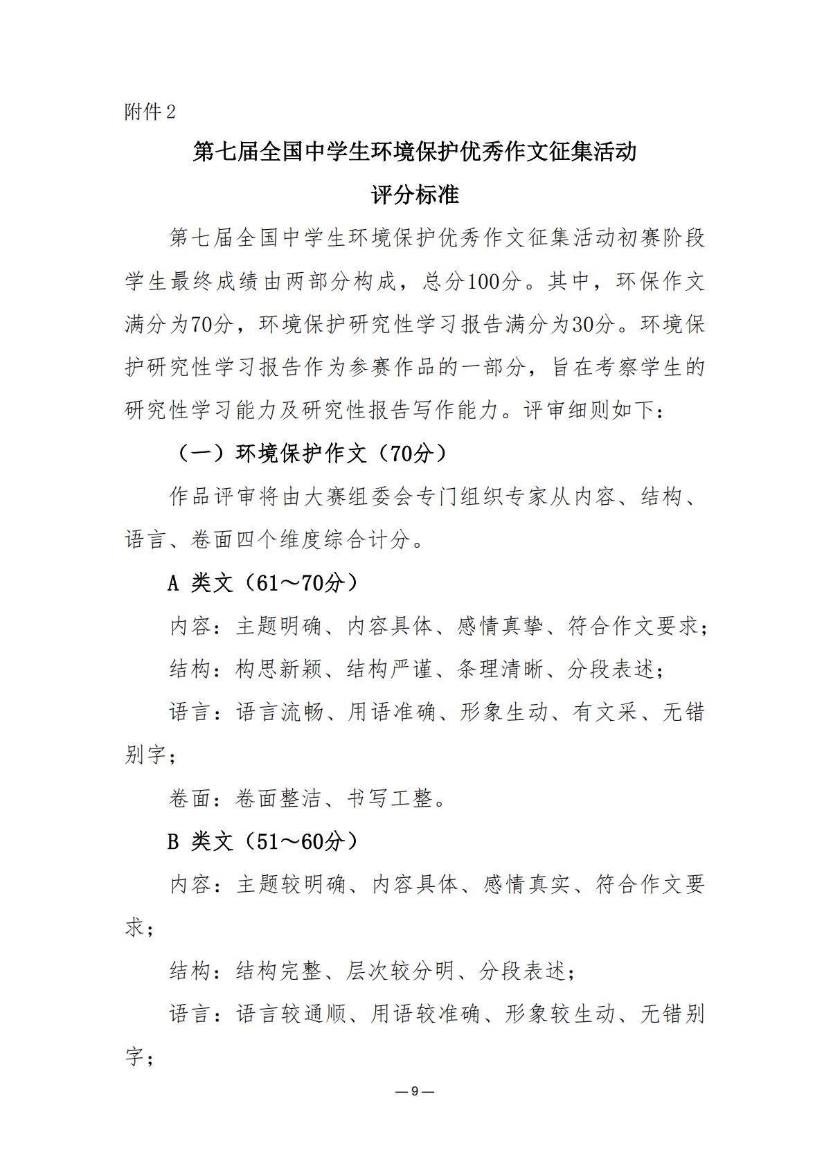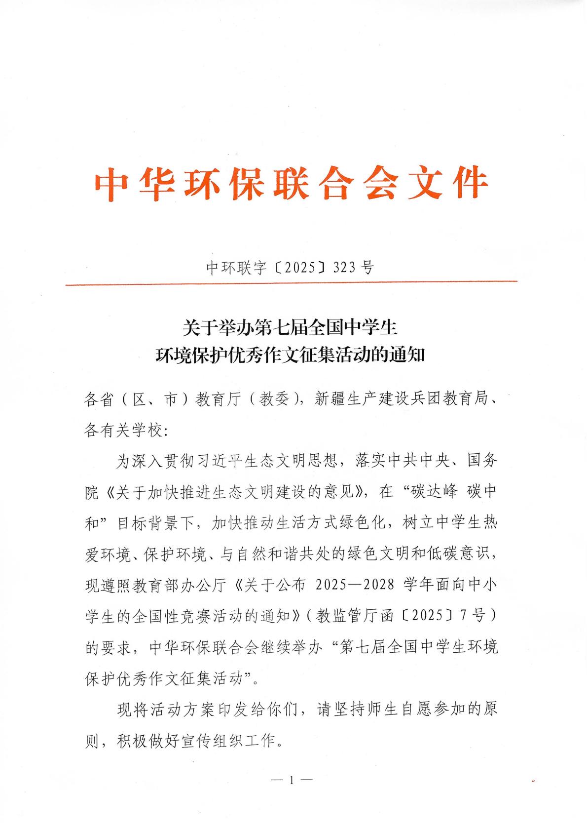 第七届全国中学生环境保护优秀作文征集活动启动通知