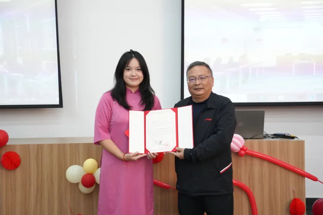 典礼上,中越青年逐一分享学习感受;马杰校长为大家颁发结业证书并合影留念。