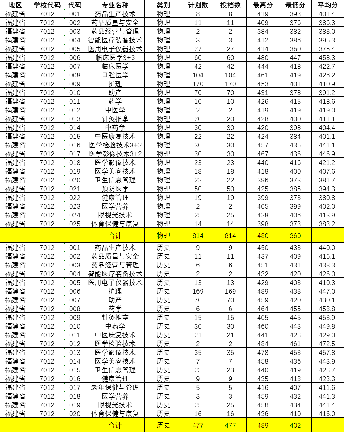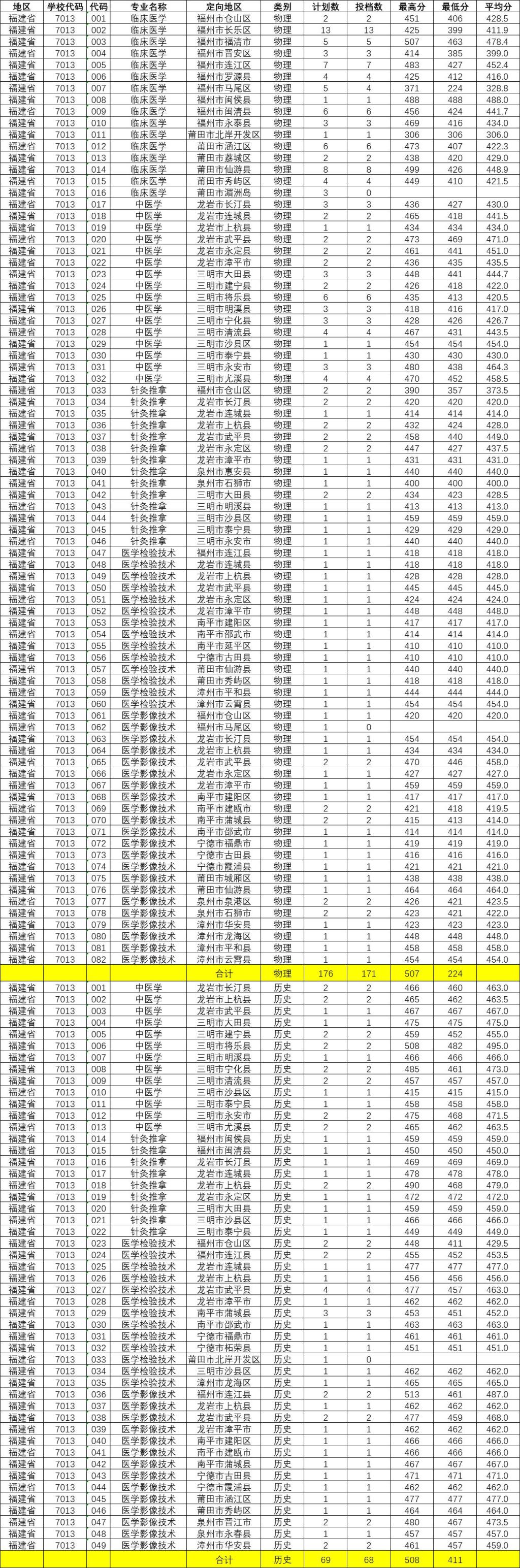 2022年福建省录取分数线(常规志愿批次)