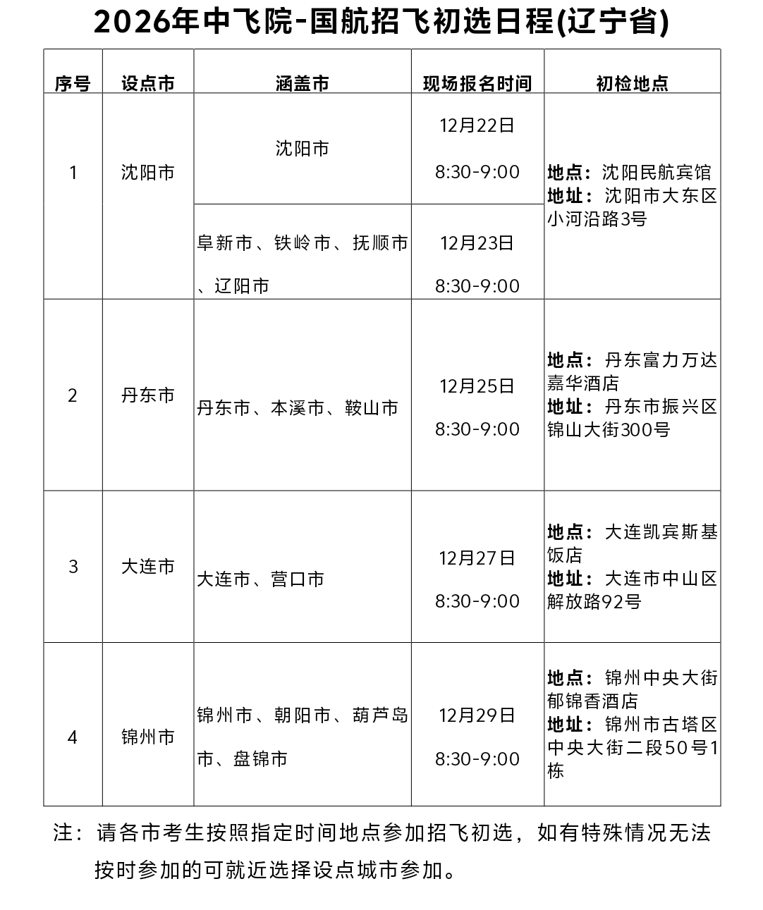 3.初选项目均在指定的地点进行,不收取任何费用,考生往返初选地点费用自理,请家长确保考生往返初选地点人身安全;