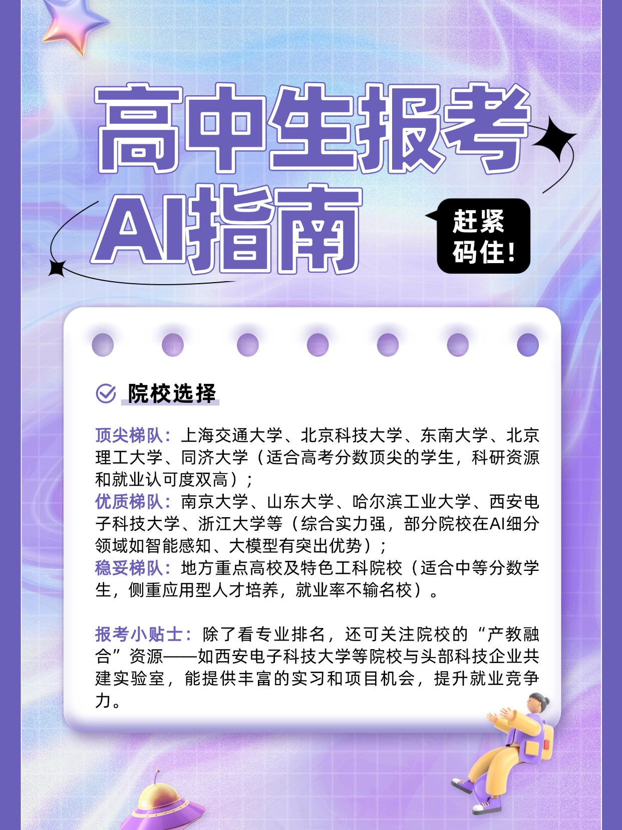 提到未来十年最具潜力的专业,人工智能(AI)绝对是绕不开的核心选项。高薪、人才缺口大,已经成了不少考生家长关注的目标。那么对于高考生而言该如何填报呢?一起了解!