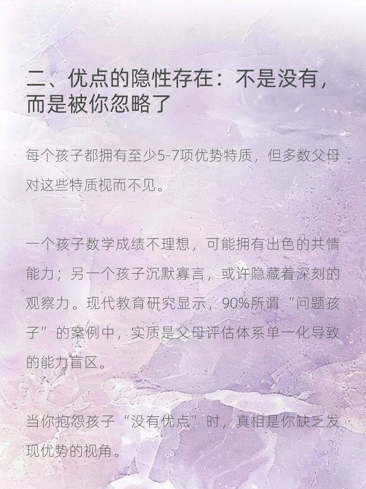 当孩子的成绩单被缺点占据视线,我们是否成了制造阴影的人?聚焦不足,只会让缺点在潜意识里生根发芽。每个孩子都有5-7项优势特质,但90%的父母都陷入了能力盲区。不是孩子不够好,而是我们的评价体系太过单一。