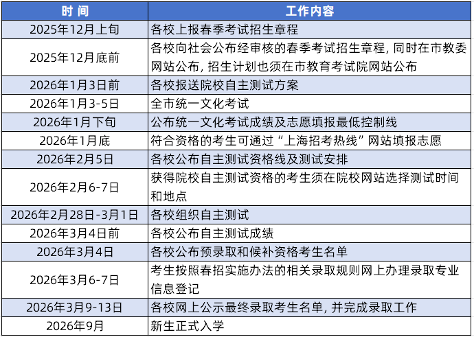 根据《国务院关于深化考试招生制度改革的实施意见》《上海市深化高等学校考试招生综合改革实施方案》等精神,2026年上海继续实施春季考试招生试点。
