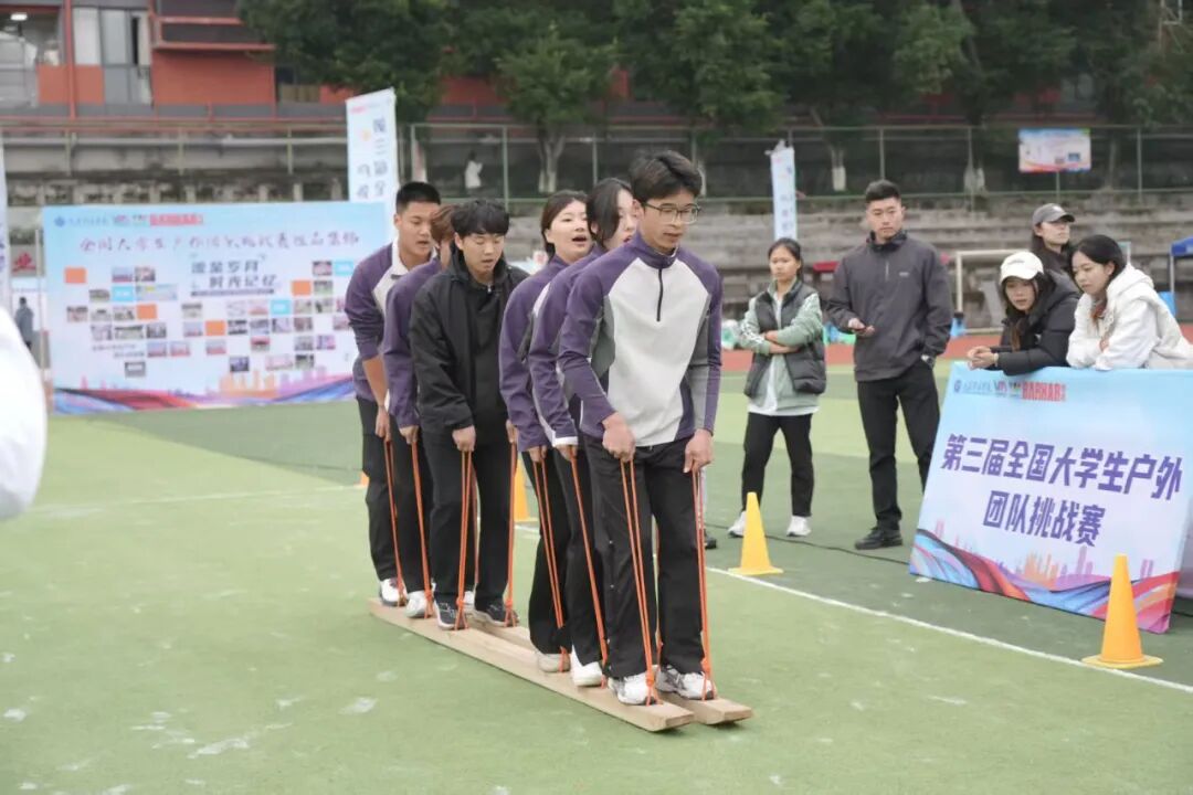 此次比赛旨在进一步推动户外运动在高校中的深度发展,搭建全国大学生交流互通的平台,帮助学生舒缓学业压力、激发创新潜能,并在自然中体验多元有趣的运动方式。本届赛事共吸引了来自北京大学、成都大学、重庆科技大学、四川农业大学等16所高校的200余名运动员参赛。比赛共设“鼓舞人心”、“旋风跑”、“团队营救”、“有轨电车”4个团队项目,飞盘高尔夫、定向越野、攀岩速度赛3个个人项目。团体总积分根据各团队项目成绩与积分相加得出,最终决定团体名次。