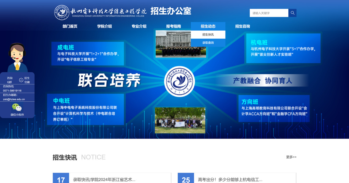 1.考生进入杭州电子科技大学信息工程学院本科招生网(www.hziee.edu.cn/zs/);