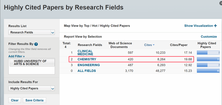 近日,科睿唯安(Clarivate Analytics)最新发布的基本科学指标数据库(Essential Science Indicators,简称ESI)数据显示,学校化学学科首次进入ESI全球前1%,成为继临床医学、工程学之后,第三个跻身该国际高水平行列的学科。此举标志着学校化学学科在研究水平、学术影响力及创新能力等方面已迈入国际先进行列,也是学校长期坚持“学科建设为龙头”发展战略、持续推进学科建设所取得的又一标志性成果。