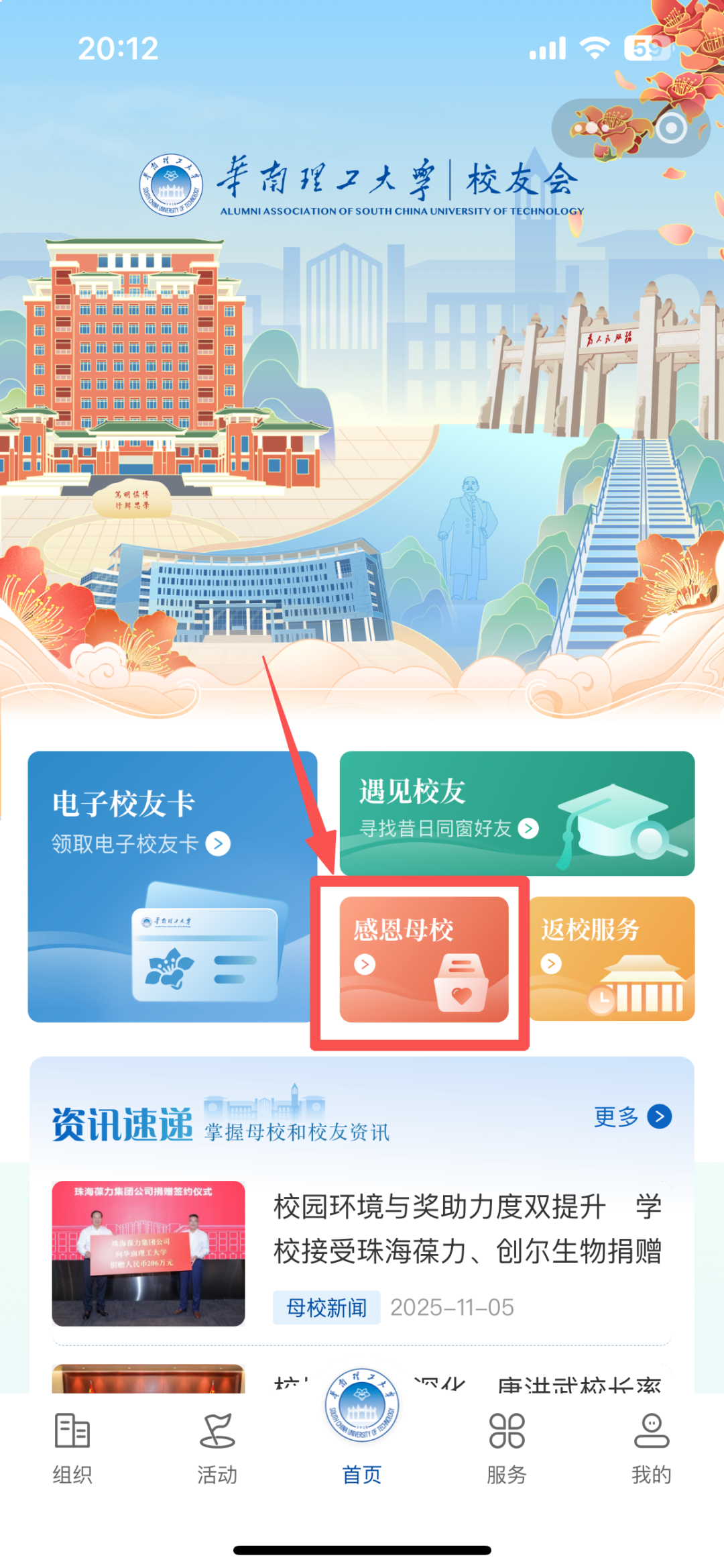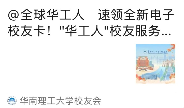 为此,学校校友会特别推出“华工人”校友服务小程序领取电子校友卡、了解母校信息、加入校友组织、参加校友活动、以及校友企业合作、求职招聘、助学捐赠、查询档案……各种贴心细致的服务助力校友们在此处重新集合让校友与校友、与母校之间的故事
